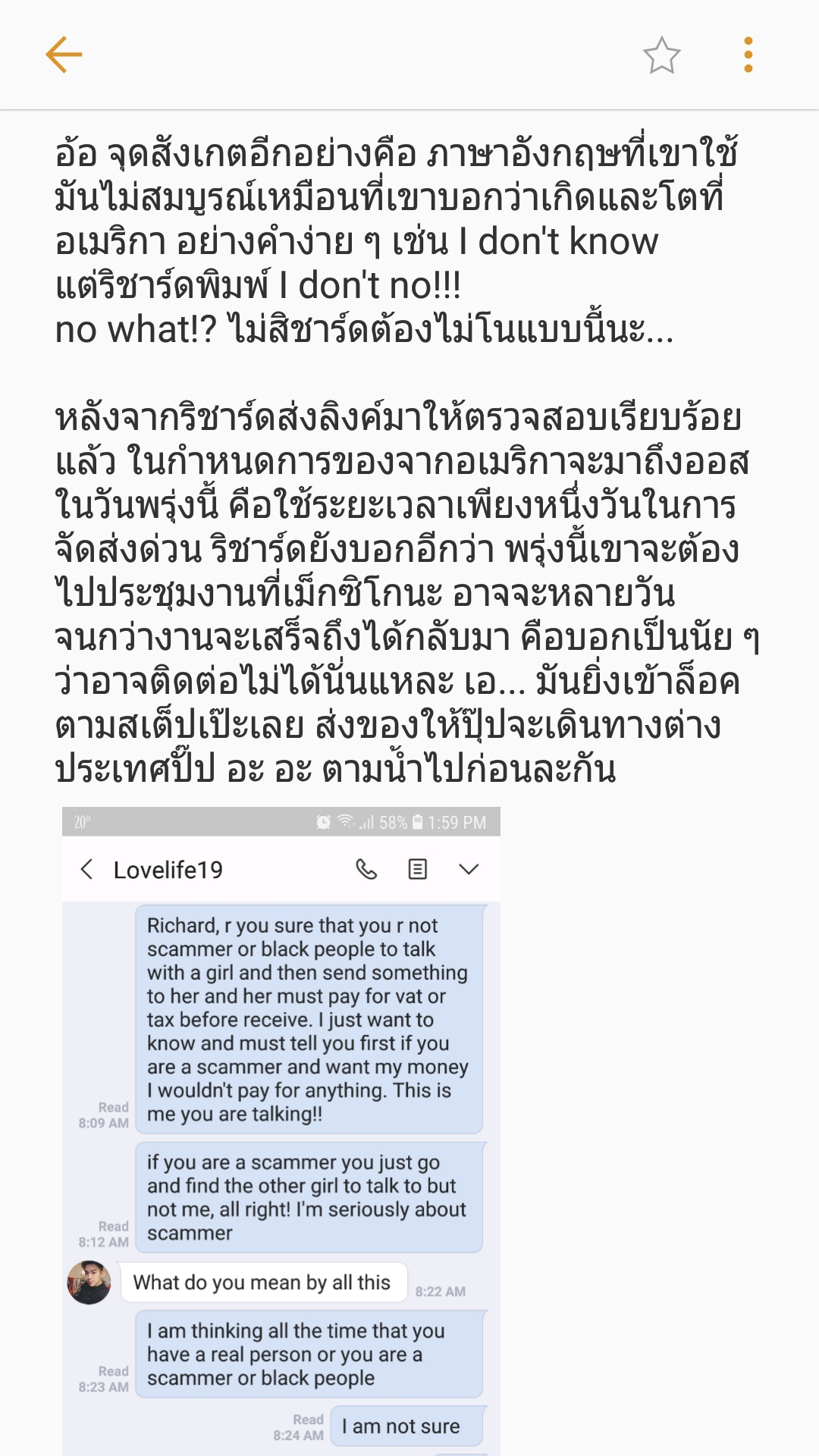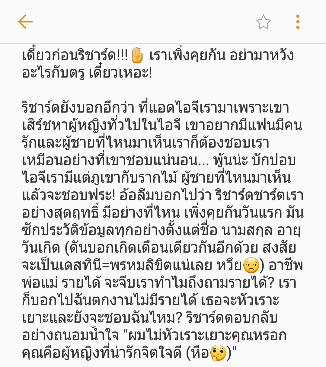 ทุกอย่างมันเข้าล็อคไปหมด ข่าวก็อ่าน พันทิพย์ก็อ่าน เราจะมาโดนกับตัวเองไม่ได้นะ จากนั้นเราจึงเข้าไปเช็คประวัติบักริชาร์ด ก็มีข้อสันนิษฐานดังนี้