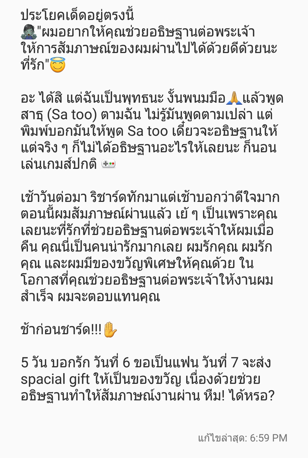 เราเล่าเรื่องที่เกิดขึ้นโดยการพิมพ์ไว้ในบันทึกของโทรศัพท์เพื่อส่งให้ครอบครัวและเพื่อนที่รู้จักกันอ่านไว้ให้รู้ทัน จะลองแนบโน๊ตดูนะคะว่าได้หรือเปล่า ยาวไปหน่อยแต่คาดหวังว่าจะเป็นประโยชน์กับทุกคน