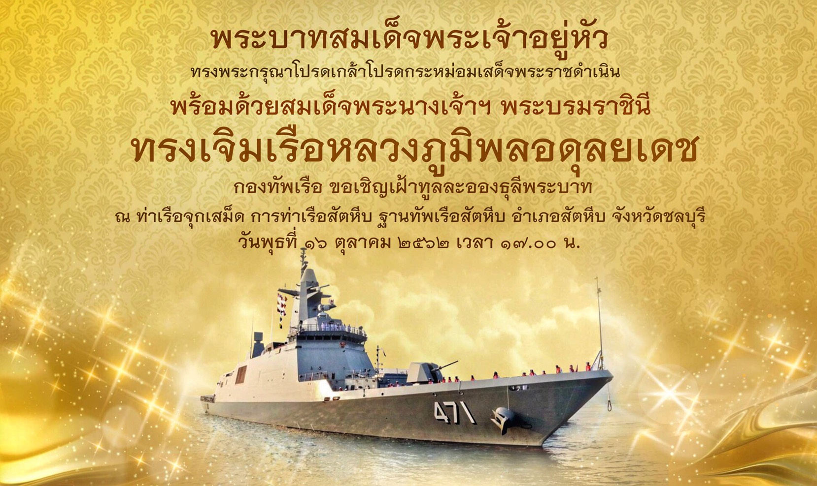 พระบาทสมเด็จพระเจ้าอยู่หัว ทรงพระกรุณาโปรดเกล้าโปรดกระหม่อม เสด็จพระราชดำเนินทรงเจิมเรือหลวงภูมิพลอดุลยเดช 16 ตุลาคม 62