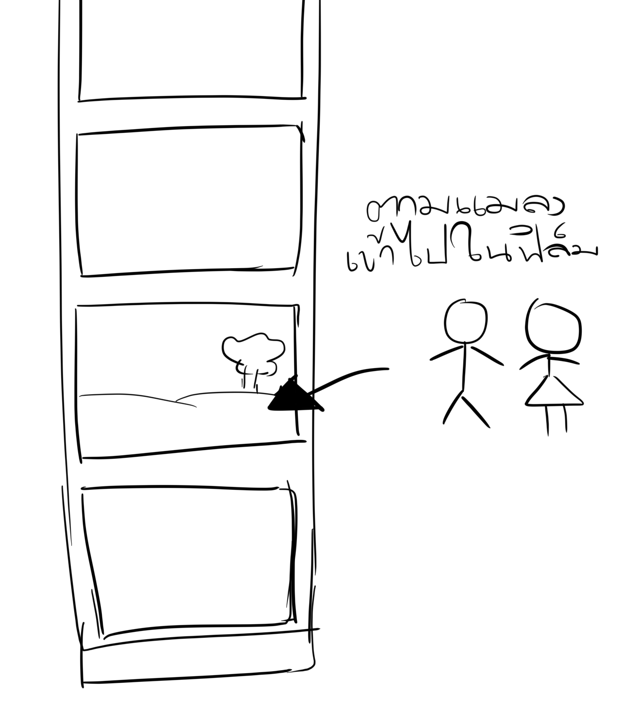 เรื่องมีอยู่ว่า มีสองพี่น้อง ชายหญิงกำลังเข้านอน(หรือนอน) ได้เจอแมลงตัวหนึ่งค่ะไม่ทราบว่าเป็นแมลงอะไร แมลงตัวนี้มันบินเข้าไปที่ฟิล์มภาพถ่าย หรือหน้าต่างค่ะ อันนี้เราไม่แน่ใจ และเด็กสองคนก็ตามเข้าไปค่ะ เดียวเราขอวาดรูปให้ดูนะคะ