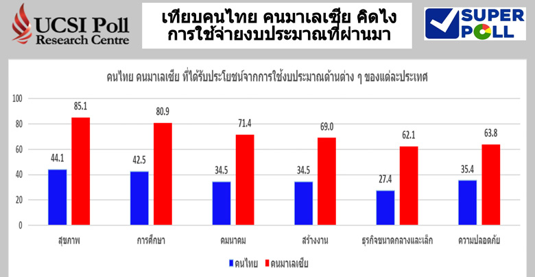 "ซูเปอร์โพล" คนไทย ชี้ รัฐบาลไทยใช้งบประมาณช่วยเหลือประชาชนน้อยกว่าคนมาเลฯในทุกด้าน