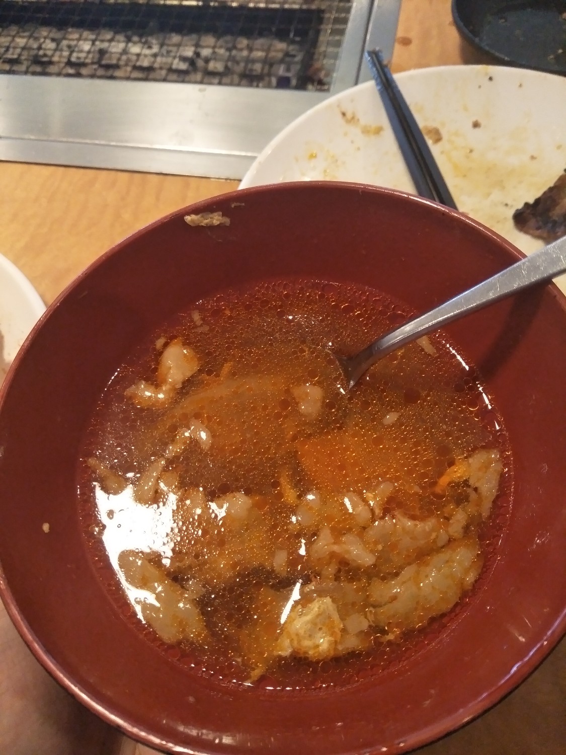 เป็นซุปสีส้มๆ น่าจะเป็นซุปมะเขือเทศ มีเนื้อสไลด์ หัวไชเท้า รสชาติหวานๆ