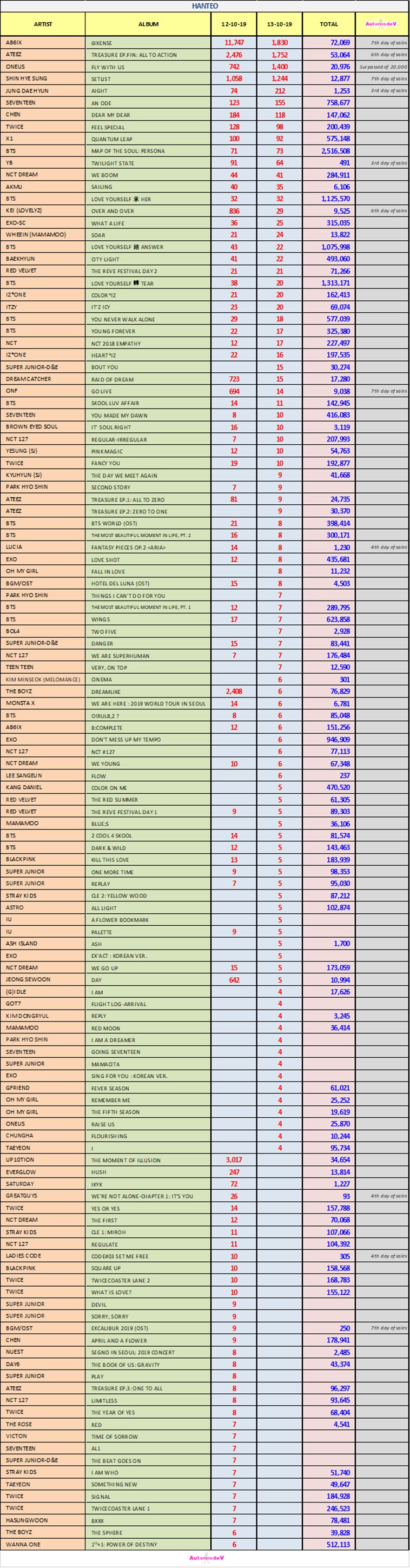 ยอดซื้ออัลบั้มจากชาร์ต HANTEO 12 - 13 ตุลาคม 2562 + SUPER JUNIOR Now!!