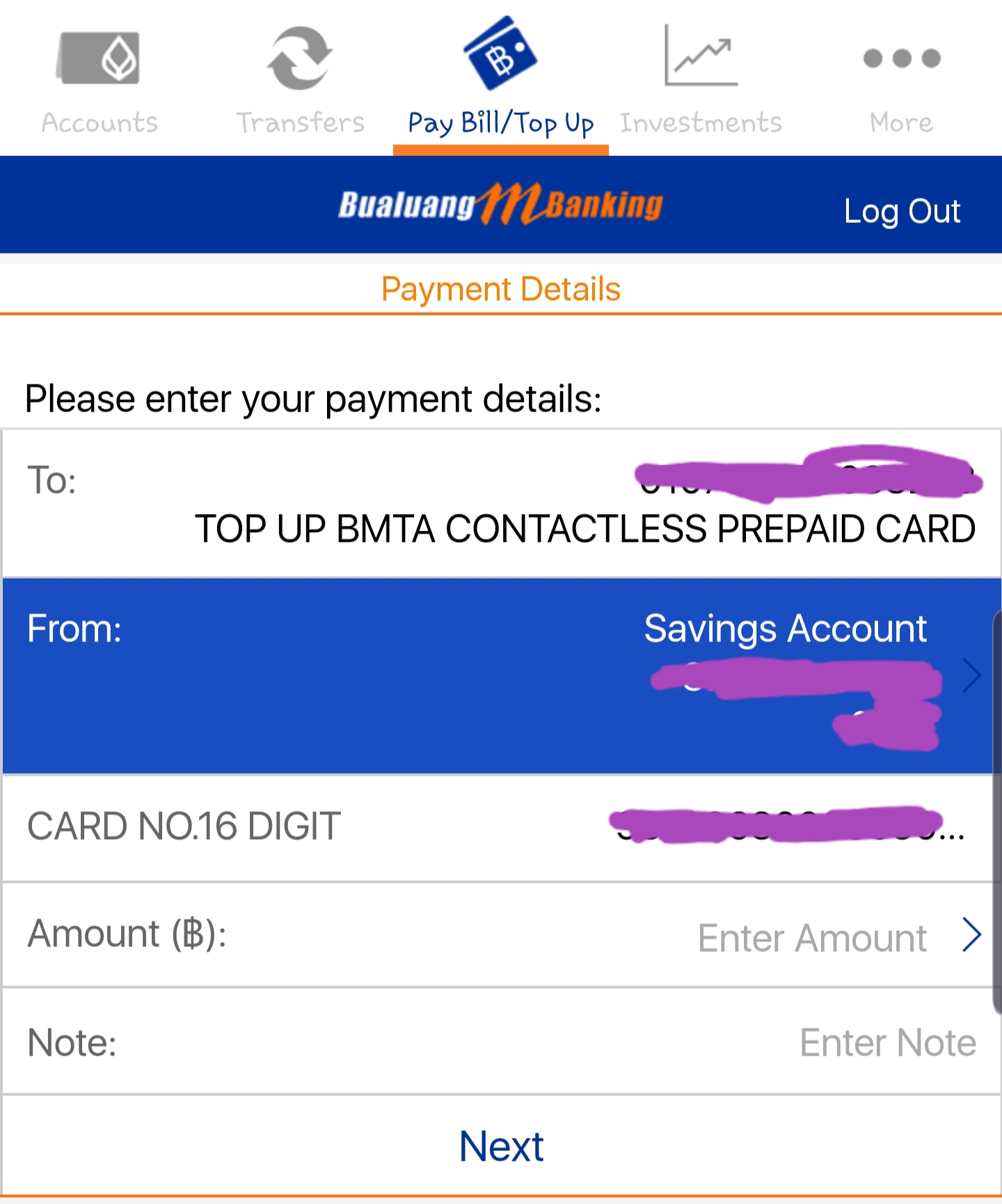 - เลือกบัญชีที่จะจ่ายเลย ขั้นตอนนี้ขอปิดยอดเงินนะ เพราะมีน้อยจนน่าอาย --"
