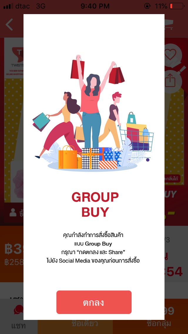 เมื่อเราทำการกดสั่งซื้อแบบกลุ่มแล้ว ให้กด “ตกลงและแชร์”