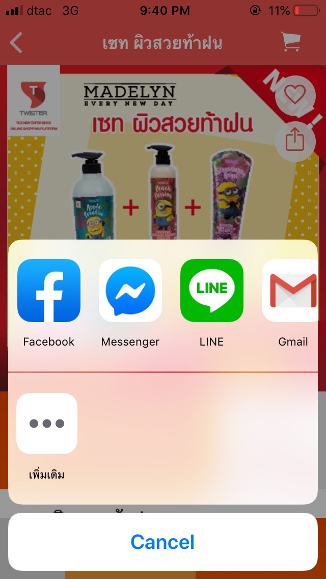 โดยเราจะแชร์ให้เพื่อนช่องทางไหนก็ได้ค่ะ แล้วแต่เราเลือกเลย ไม่ว่าจะ Facebook,Messenger,Line หรือช่องท่างอื่นๆก็ได้ค่ะ เพื่อเป็นการชักชวนให้เพื่อนๆที่สนใจอยากได้สินค้าเหมือนเรามาร่วมสั่งซื้อค่ะ
