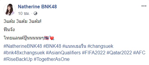 เมื่อเย็นวานน้องๆ BNK48 เดินทางไปยังมหาวิทยาลัยธรรมศาสตร์ศูนย์รังสิตด้วยภารกิจเชียร์ฟุตบอลทีมชาติไทยพบกับ UAE ( ฟุตบอลโลกรอบคัดเลือกโซนเอเชีย )