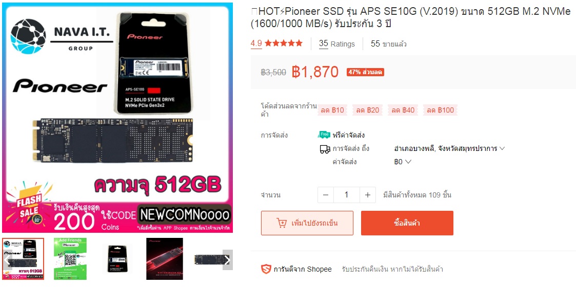 เจอ Pioneer M.2Mvne ใน Shopee เป็นแบบ 2 ร่องบาก
