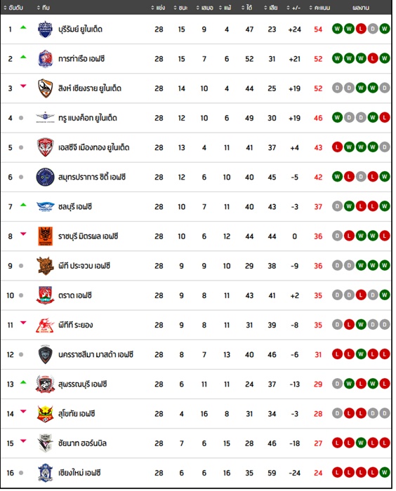 สรุปตารางคะแนนไทยลีก (กันลืม)