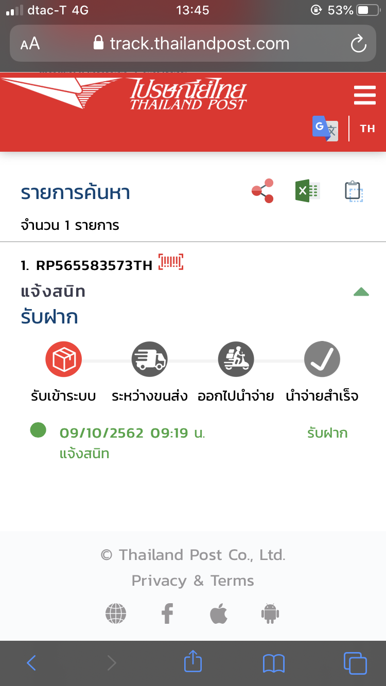 ไปรษณีย์ขึ้นรับเข้าระบบมาเป็นอาทิตย์แล้วของยังไม่ไปไหนเลย