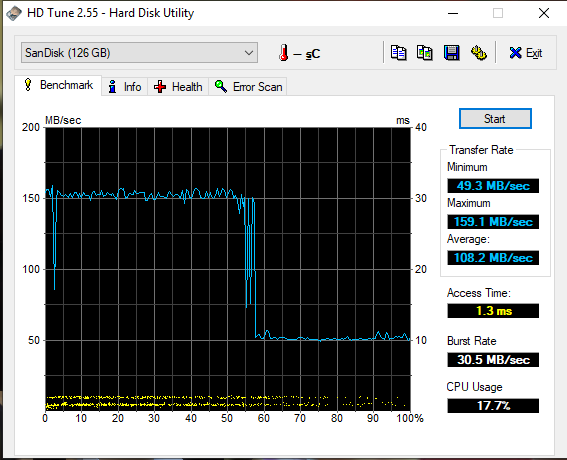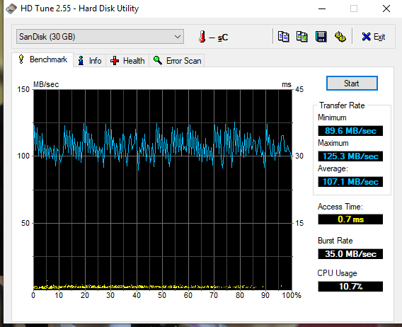 ความเร็วในการอ่านที่ซองบอกคือ 200 MB/sec แต่ความเร็วในการเขียนคือ 150 MB/sec แต่จริงๆแล้วออกมาแบบนี้