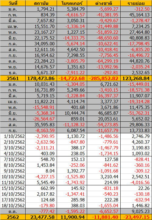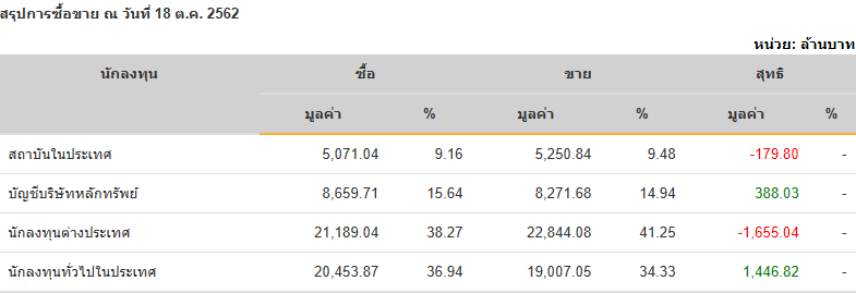 Sinthorn Summary 18/10/2562 : ต่างชาติขายสุทธิ -1,655.04 ลบ.