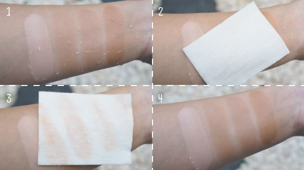 หลังจากใช้สำลีเช็ดน้ำ พบว่ามีสีของรองพื้นติดสำลีมาบ้างเล็กน้อย
