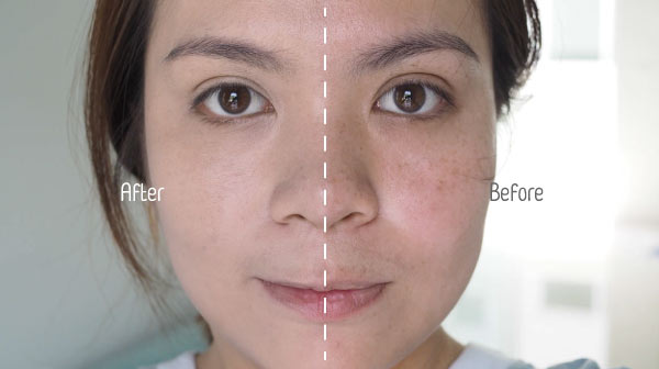 ทดลองทาครึ่งใบหน้า เปรียบเทียบให้ดูกันชัดๆ (โดยไม่ได้ลงไพร์เมอร์)