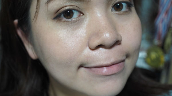 จะเห็นว่าแก้ม กับปากไม่เหลือสีแล้ว หน้ามีความมันขึ้นมาเล็กน้อย เพราะไม่ได้ซับหน้าเลย