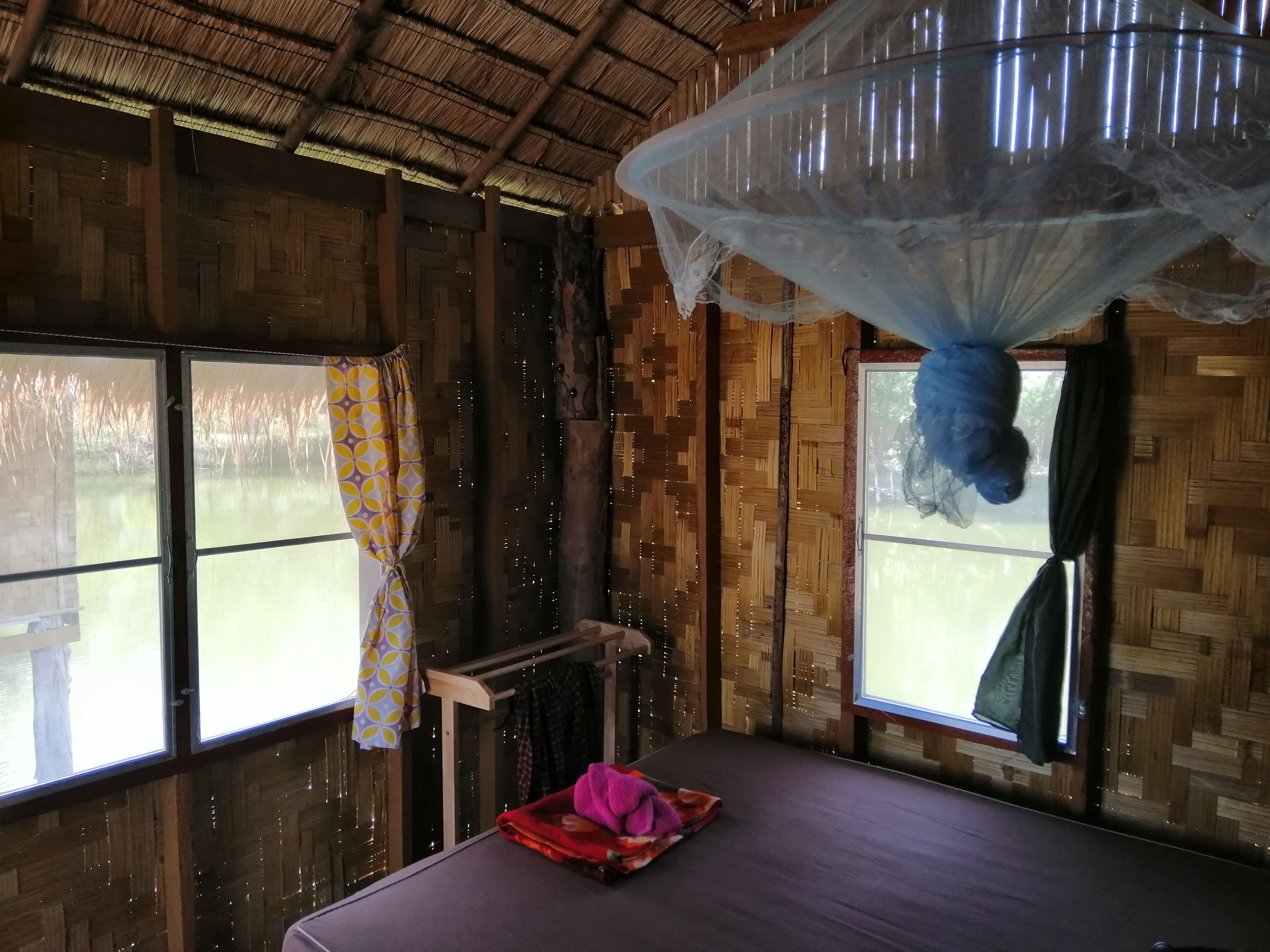 บ้านดินมีให้เลือกหลายแบบเลย ทั้งดินเหนียว ดินทราย ดินโคลน ไม้ไผ่ เยอะมากก ราคาก็แตกต่างกันไป เราจองบ้านพอเพียงผ่านเพจเฟสบุ๊คชื่อ นำ้พุบ้านดินโฮมสเตย์ปราณบุรี จริงๆหลังละ600นอนได้2คน แต่มาคนเดียวพี่เขาเลยคิดแค่500 บ้านพัดลมติดริมน้ำ ห้องน้ำแยก มีอาหารเช้าให้