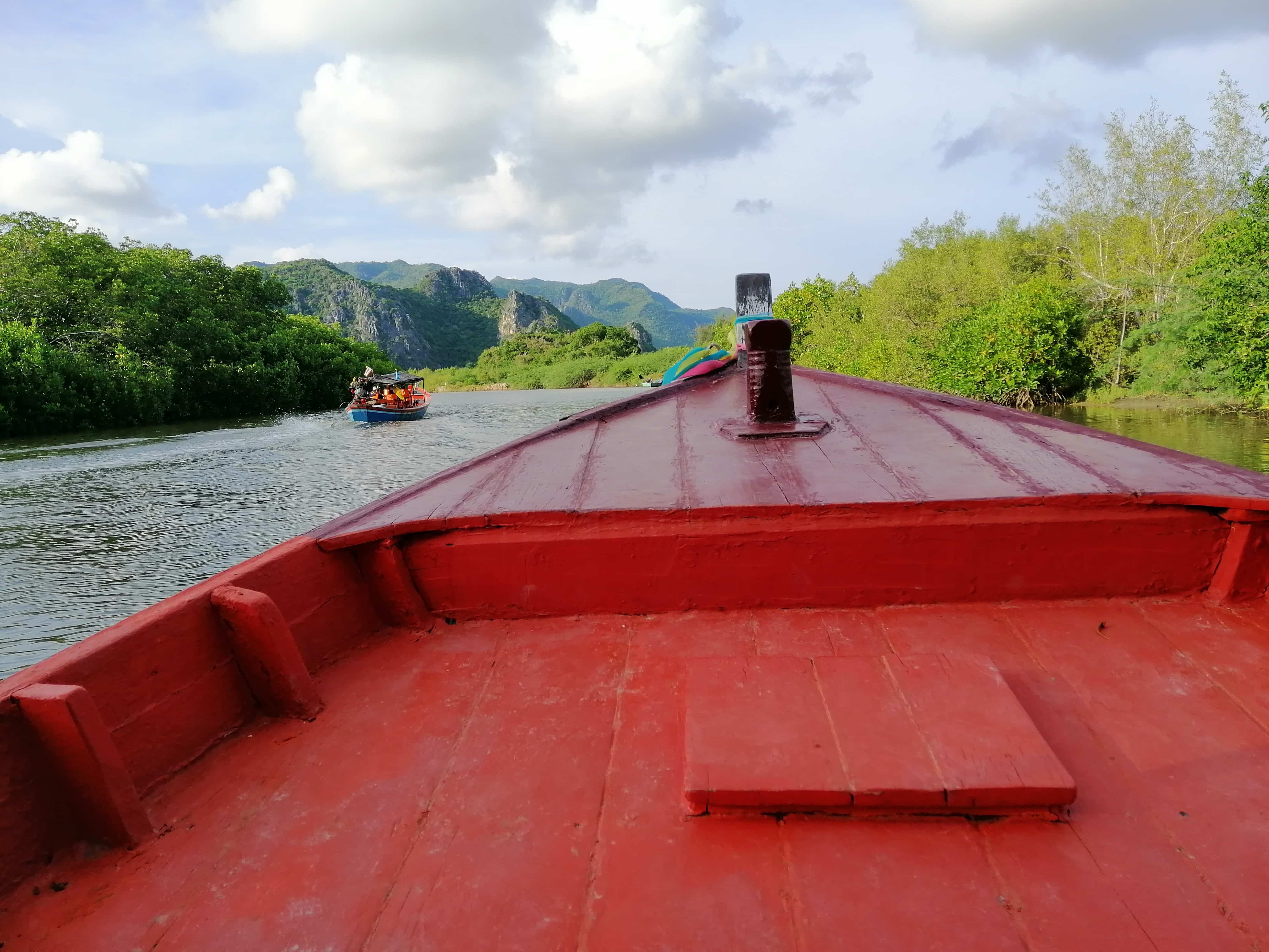 ท่าล่องเรือคลองเขาแดงอยู่ในวัดเขาแดงเลย ราคา500บาทต่อ1ลำ นั่งได้6คนใครมากับเพื่อนก็หารกัน ส่วนเรามาคนเดียวเลยต้องนั่งรอคนอื่นมาจะได้แชร์ค่าเรือ นั่งรอเกือบ2ชม. มีครอบครัวใหญ่มา2คันรถพอดี อ้าววรอดแล้วเว้ยย ก็เลยขอเขาแชร์เรือไปด้วย เขาก็โอเค พี่คนขับบอกจ่ายตอนจบ