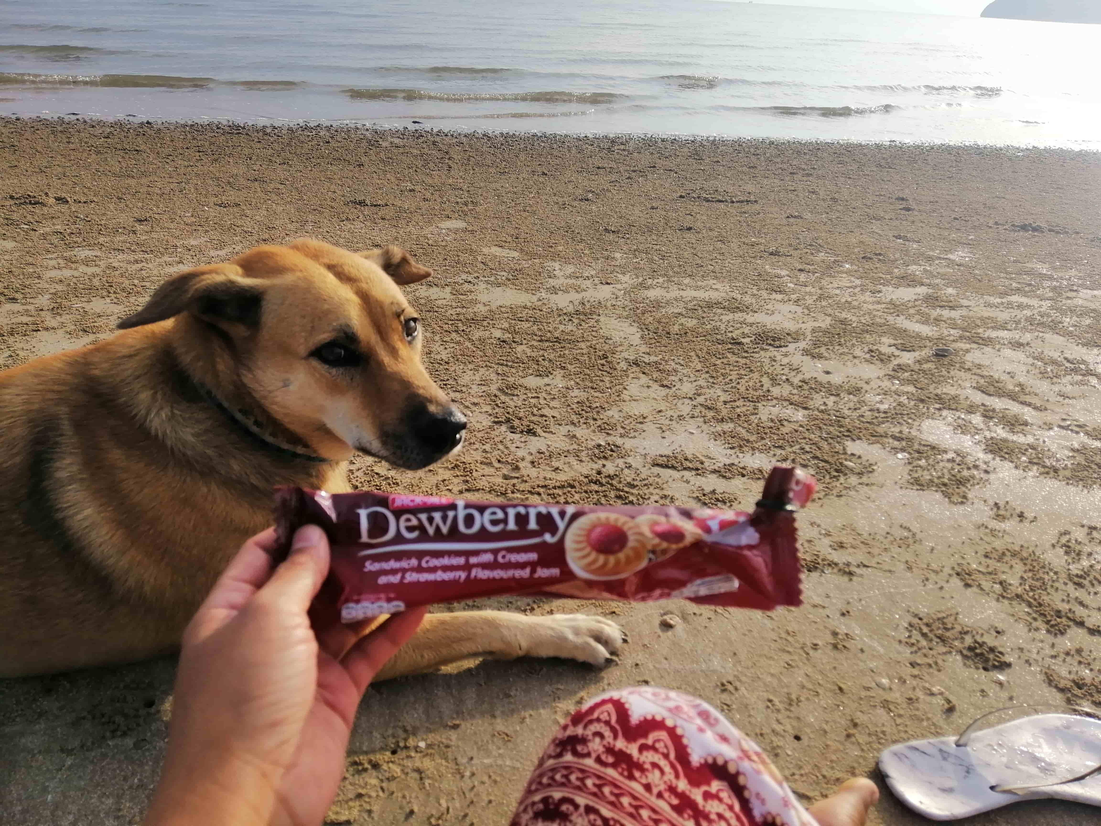 มีหมาแถวนั้นมานั่งดูเป็นเพื่อนด้วย แต่ตานี่มองแต่ขนม ยื่นให้ก็กินอ่ะ 😂