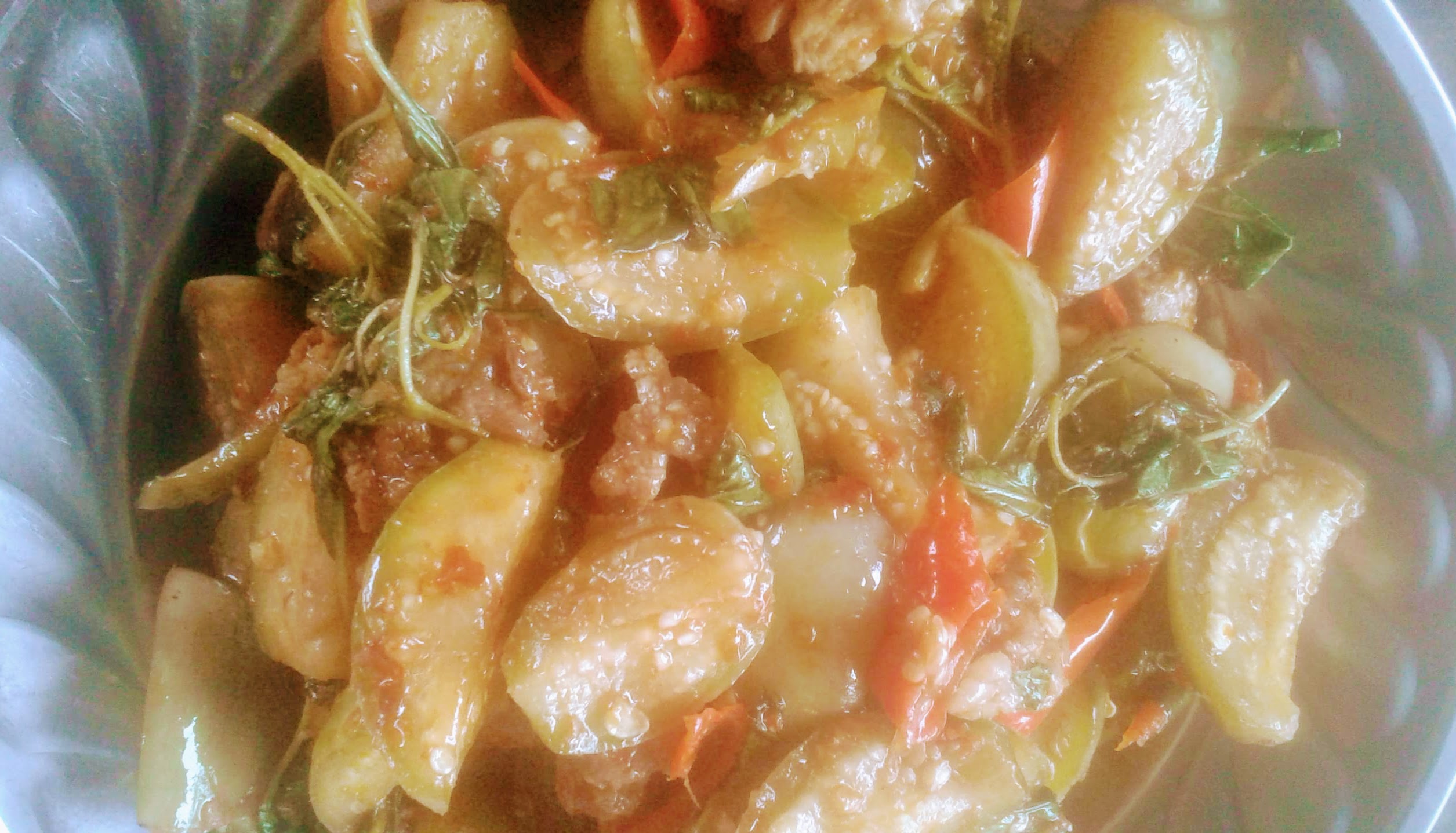 แกงมะเขือใส่เนื้อหมูมื้อเย็นของคนบ้านบ้าน