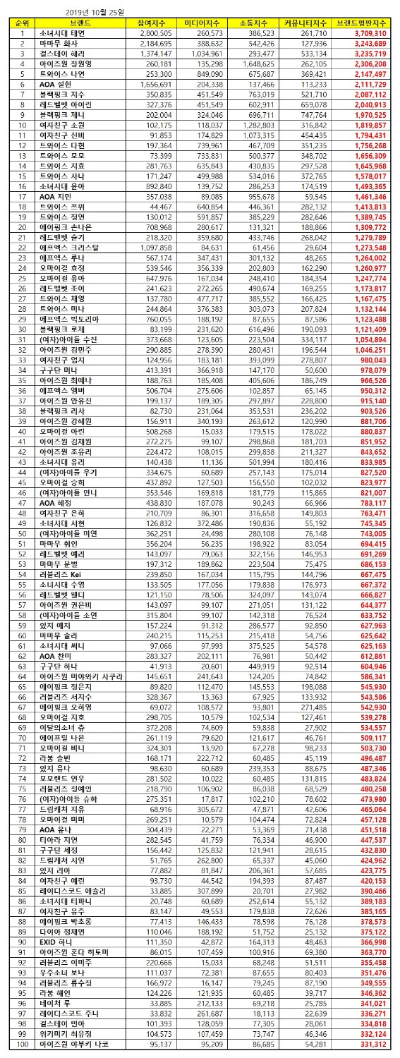 Girl Group Members Brand Rankings October 2019