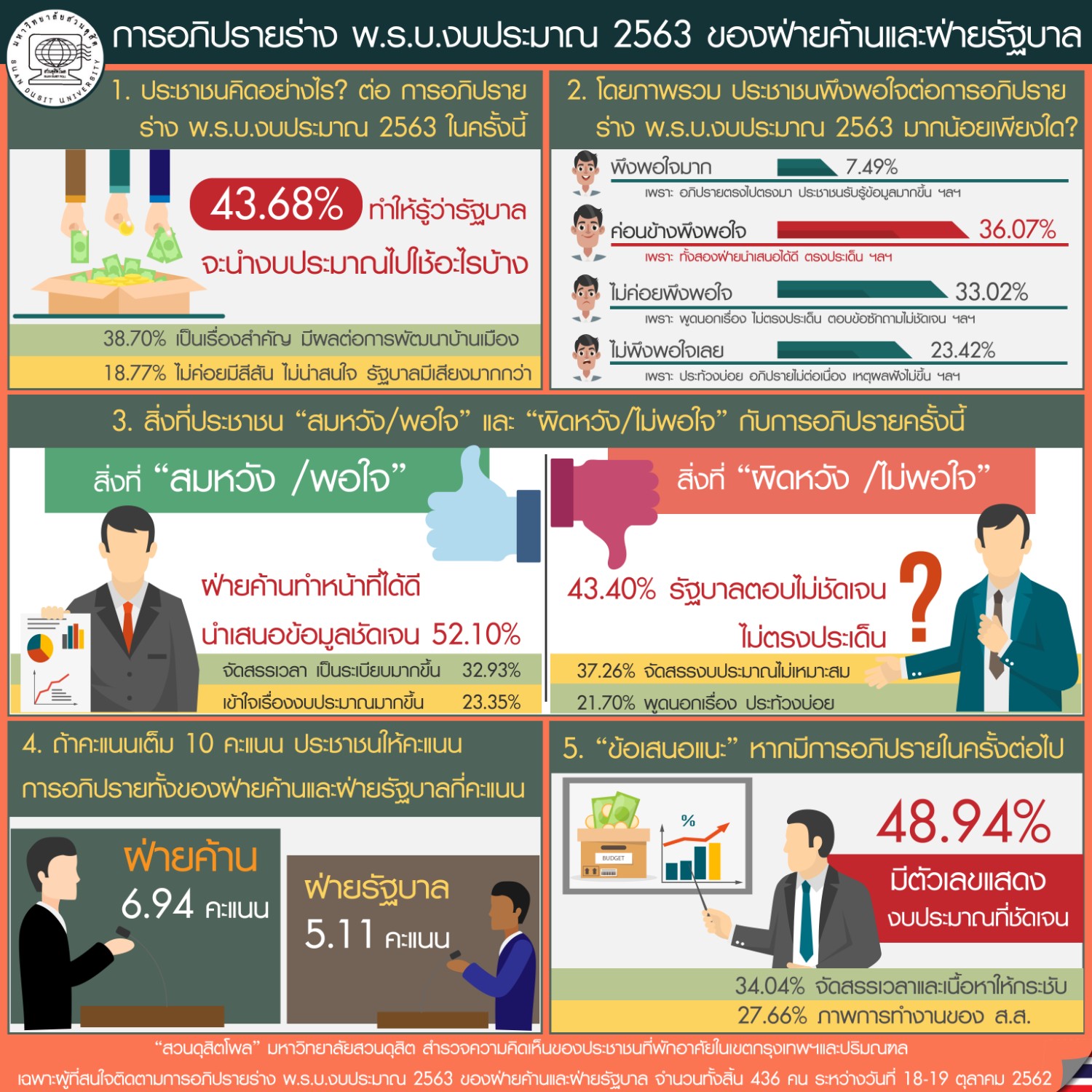 ฝ่ายรัฐบาล – ฝ่ายค้าน เดินหน้าอย่างไร? จึงจะถูกใจประชาชน http://suandusitpoll.dusit.ac.th/WEB/survey-result/2603/ #SuanDusitPoll #สวนดุสิตโพล #Dusitpoll #ดุสิตโพล