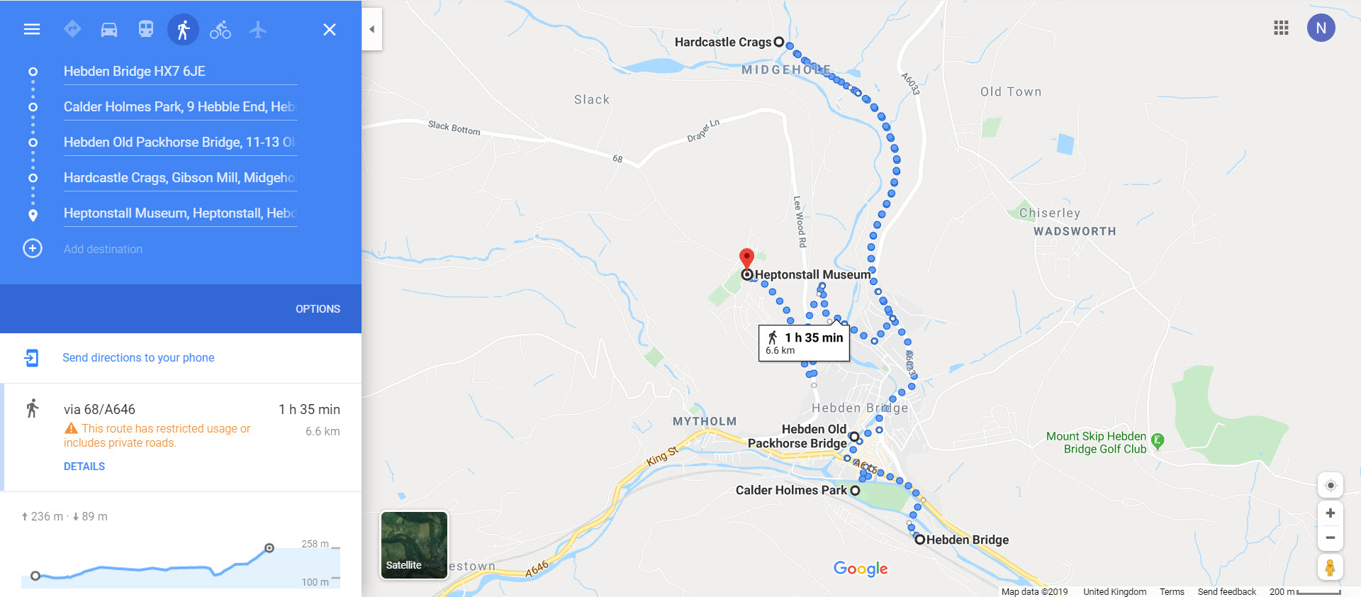 ซึ่งในวันที่เราไป เราไปวันอาทิตย์ เพราะเป็นวันที่เรากับเพื่อนว่างตรงกัน ไปกันแบบไม่มีแพลนอะไรเลย มีแค่ตั๋วขาไปกับตั๋วขากลับ เราไปถึงกันประมาณ 11 โมงกว่าๆ รถบัสที่นั่งมาขับมาส่งตรงสถานีรถไฟ Hebden Bridge เลย เวลากลับ ก็มาขึ้นรถกลับที่เดิมค่ะ มาถึงก็เปิด google map หาที่เที่ยวกัน วางแพลนกันคร่าวๆ ที่สถานีรถไฟ และนี่คือแผนคร่าวๆ ที่วางไว้ค่ะ
