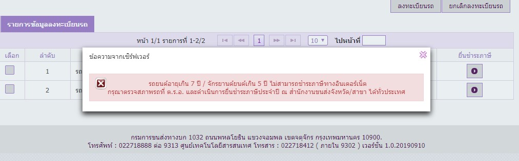 รถผมก็ปี2014 ต่อภาษีออนไลน์ตลอด รอบนี้ครบ5ปี จะเด้งแบบนี้ครับ ต่อภาษีออนไลน์ไม่ได้แล้ว