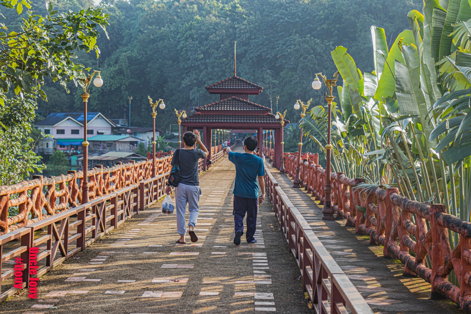 แล้วก็ที่นี่ยังมีสะพานแดงเห็นเขาว่ามันเดินข้ามฝั่งไปที่ฝั่งหมู่บ้านไทยแต่พอดีผมไม่ได้ไปนะครับ