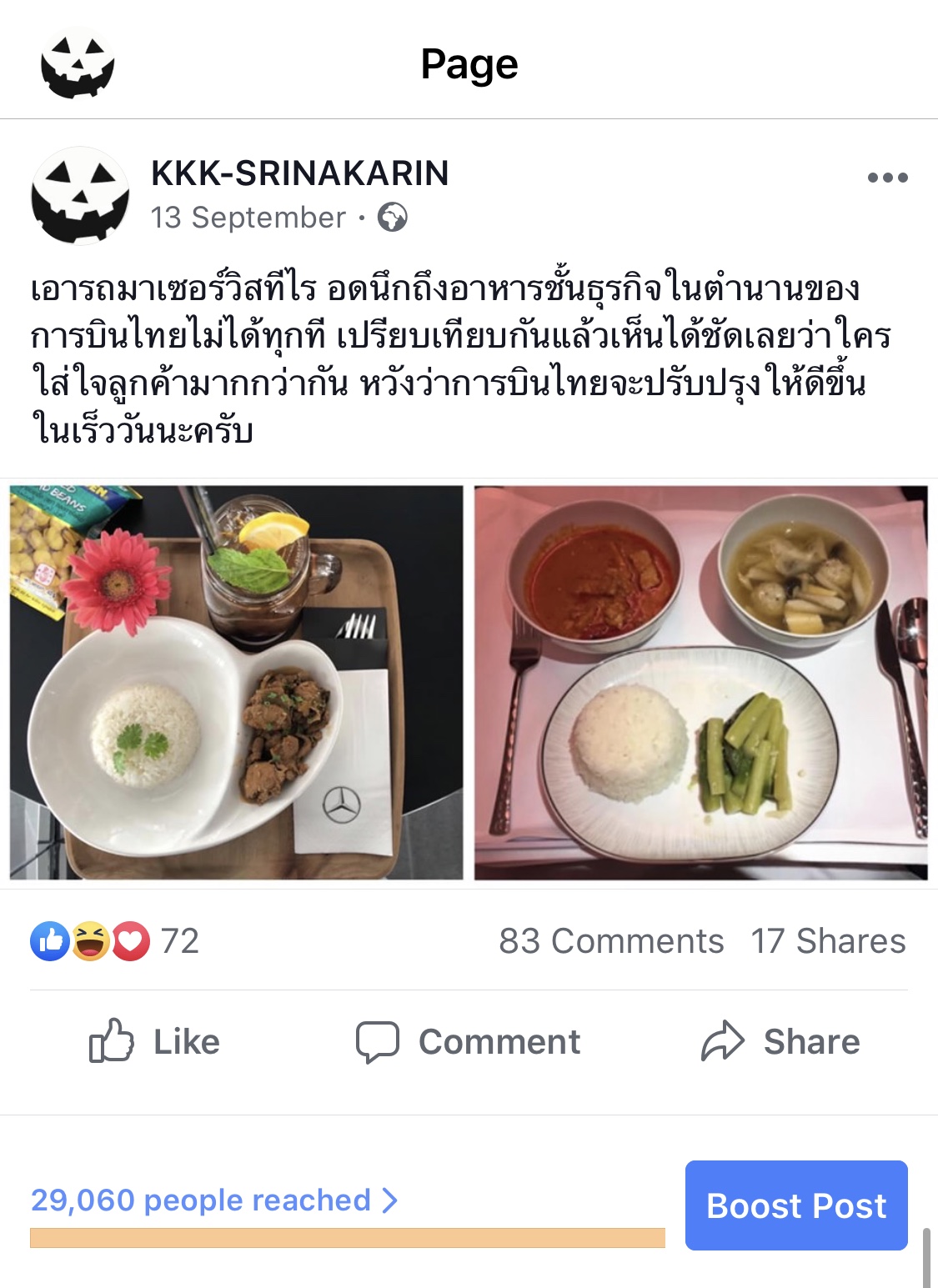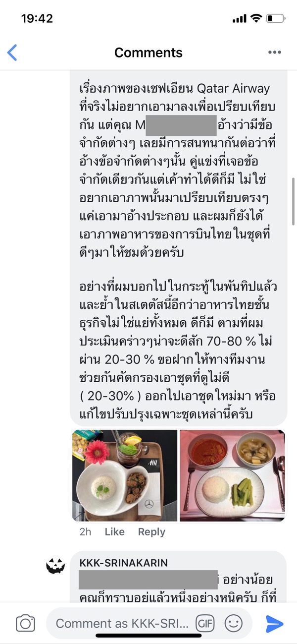 ส่วนในประเด็นถ้าไม่เห็นด้วยกับสเตตัสในเพจ อยากต่อว่า ว่าโพสท์แบบนี้ไม่ดี ไม่ชอบ ขอให้ไปโพสท์ประเด็นดังกล่าวในเพจ หรือกระทู้ “ อาหารบนชั้นธุรกิจของการบินไทย “ จะได้ตอบประเด็นได้ชัดเจนครับ
