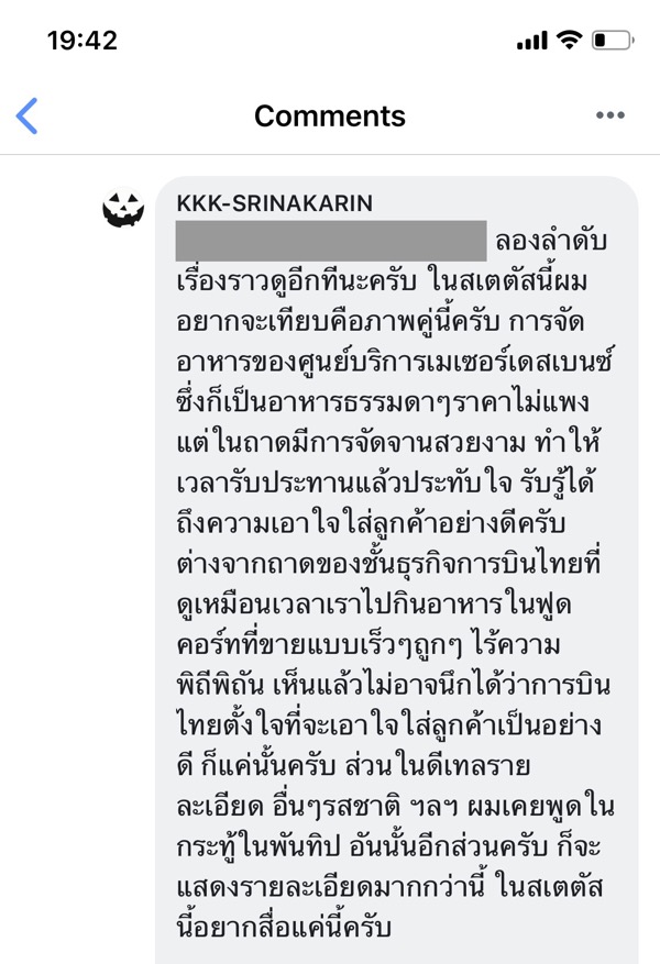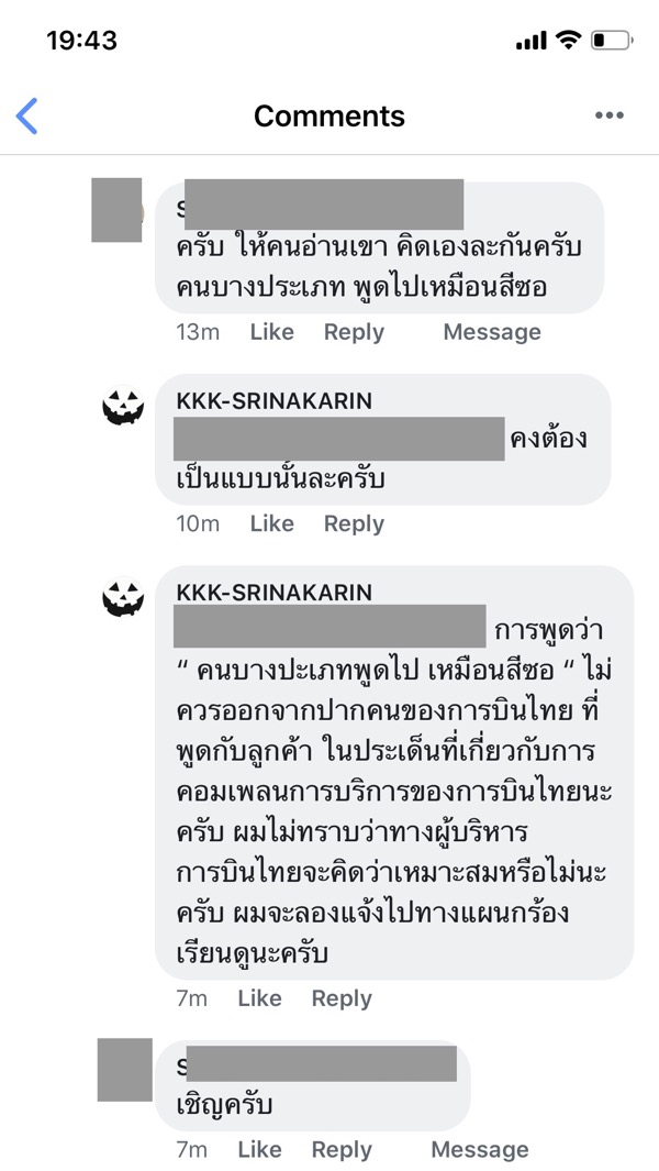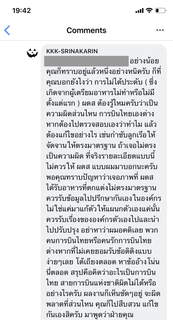 ทั้งนี้ผมทราบดีว่าในนี้คงมีคนรักการบินไทยที่เกลียดผมเยอะพอสมควร คงอยากมาคอมเม้นท์ค่อว่าผม ผมไม่ห้ามท่าน ผมพร้อมรับฟัง แต่ขอให้แยกประเด็น ในกระทู้นี้ขอให้คอมเม้นท์เฉพาะเรื่อง “ คนของการบินไทยสามารถพูดแบบนี้กับลูกค้าออกสิ่อออนไลน์ได้เหรอ “