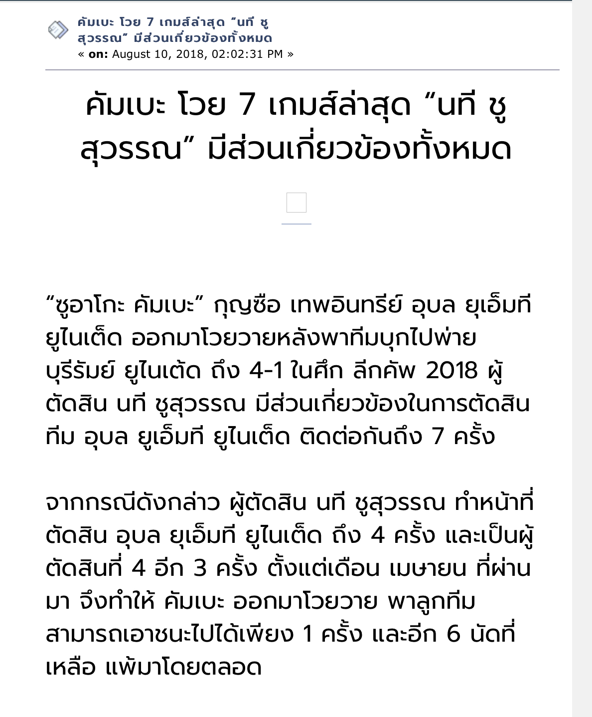 ผู้ตัดสินไทยลีก 2019 ที่กำลังโด่งดังในโลกออนไลน์ชั่วโมงนี้ คงหนีไม่พ้น "นที ชูสุวรรณ" ผู้ตัดสินชั้น1 ที่ถูกแฟนบอลการ ท่าเรือ เอฟซี กล่าวถึงมากที่สุด หลังเกมที่ บุรีรัมย์ ยูไนเต็ด ชนะ การท่าเรือ เอฟซี 3-1 เมื่อวันอาทิตย์ที่ 20 ต.ค.62