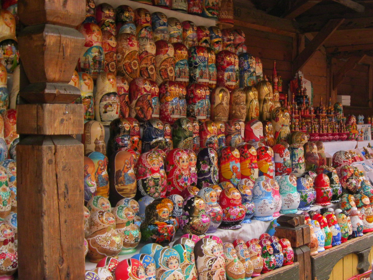 ตลาดนี้เป็นศูนย์กลางการค้าขายของที่ระลึกที่ใหญ่ที่สุดในกรุง Moscow ราคาไม่แพงมาก คนนิยมมาหาข้าวของโบราณ หรือของที่ระลึกแบบดั้งเดิมของรัสเซีย ไปฝากคนที่บ้านกัน ผมเดินดูรอบ ๆ ตลาด เขามีพวกเครื่องประดับ ผ้าคลุมไหล่ฤดูหนาว หมวกขนสัตว์ โปสการ์ด หนังสือ นาฬิกา ฯลฯ ขายให้กับนักท่องเที่ยวด้วย ผมก็ไม่พลาดเช่นกัน เราซื้อตุ๊กตาแม่ลูกดกมาหลายตัว เพราะมันเป็นของที่ระลึกของรัสเซียที่ควรจะต้องซื้อกลับไปอย่างยิ่งครับ มันดูไม่มีอะไรเป็นพิเศษ แต่ผมว่ามันมีเอกลักษณ์ในตัวของมันเอง ที่สำคัญมีลูกเล่นในตัวด้วย (ในตัวใหญ่มีตัวเล็กอีกหลายตัวครับ) ถ้ามีโอกาสไปต้องซื้อกลับมานะ เดี๋ยวจะหาว่าไม่เตือน....