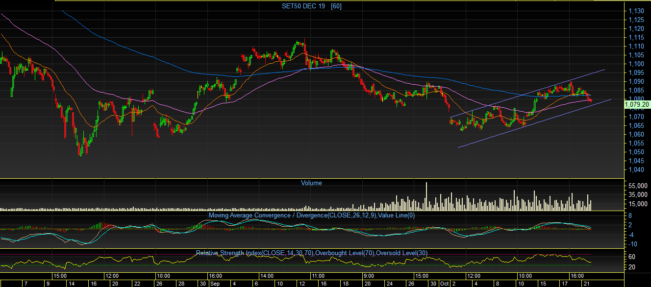 และกำลังจะทดสอบเส้นแนวรับล่าง ซึ่งต้องมาดูกันว่า ดัชนีจะสามารถฟื้นตัวได้หรือไม่ หากฟื้นตัวได้ ก็มีโอกาสที่จะกลับไปทดสอบแนวต้าน 1090 จุด