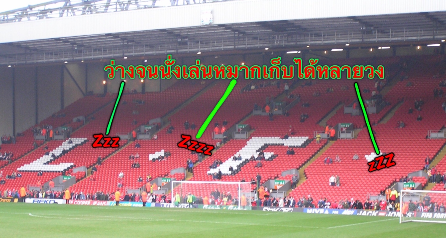 -The Kopในสนามทั้งเหย้าและเยือนเริ่มแชเชือนส่งเสียงเบาลงคงเริ่มมีอาการเจ็บคอ