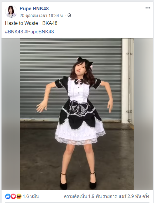จากที่เมื่อวันอาทิตย์ ปูเป้ได้โพสคลิบเต้นโคฟเวอร์เพลง Haste to Waste ของยูนิต BKA48