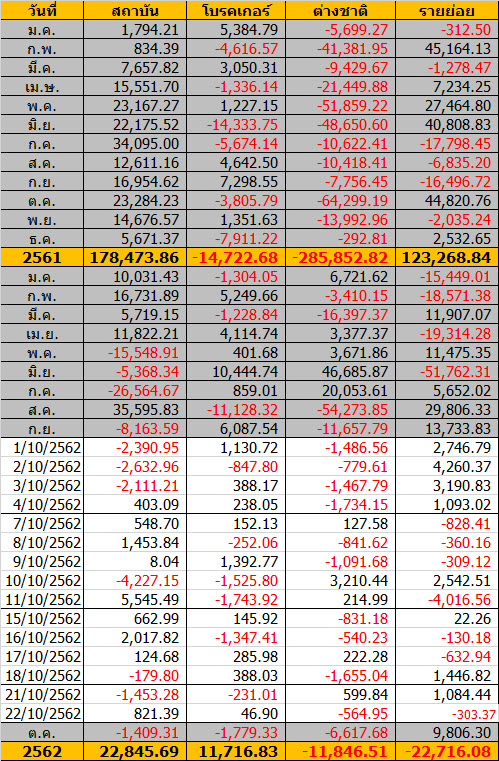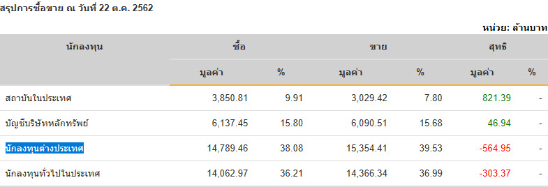 Sinthorn Summary 22/10/2562 : ต่างชาติขายสุทธิ ลบ.