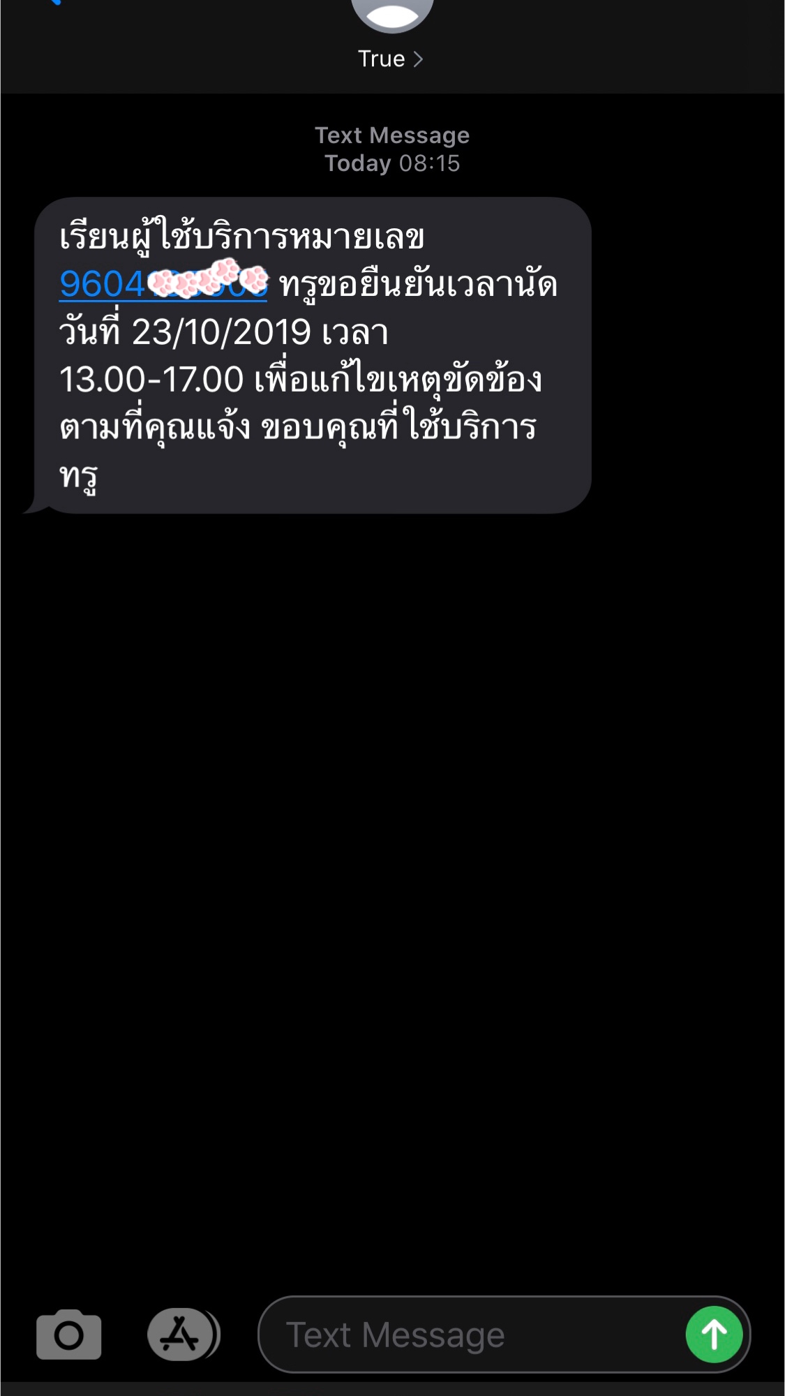 ก็ตกลงนัดเวลากันเรียบร้อย พอถึงวันช่วงเช้าก็มี sms แจ้งมาว่า ช่างจะมาตอนช่วงบ่าย