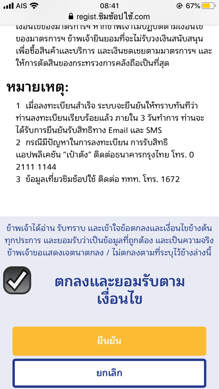 กดยืนยันขอตกลงไม่ได้