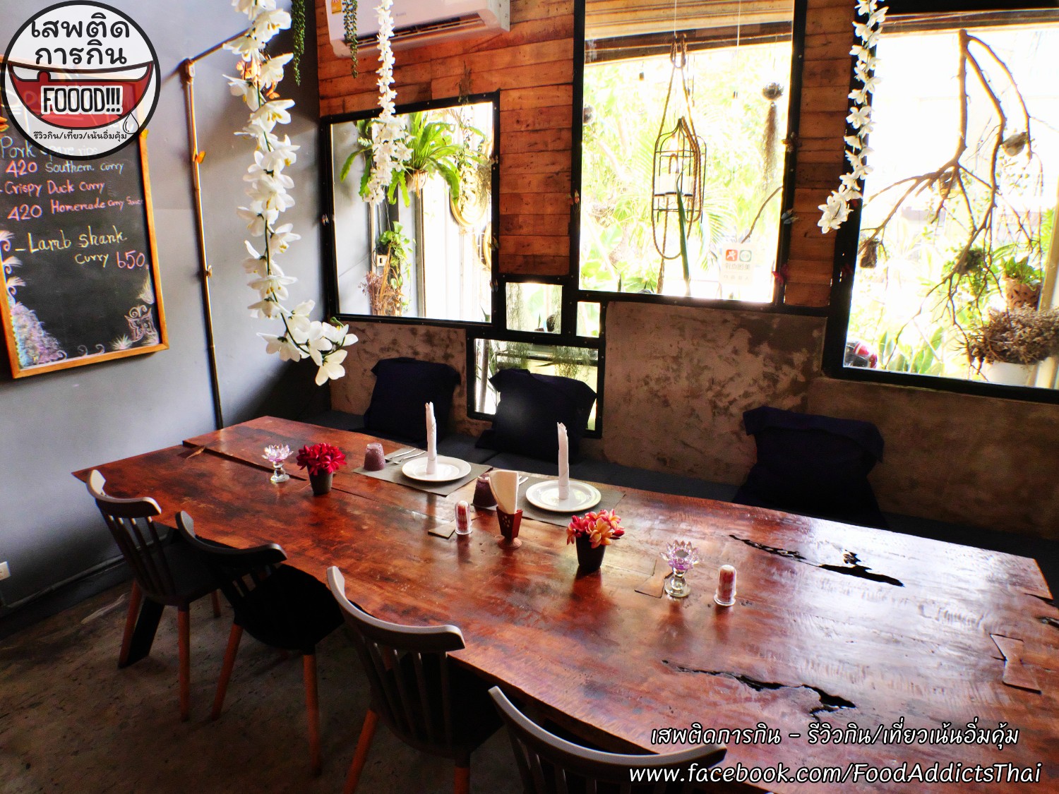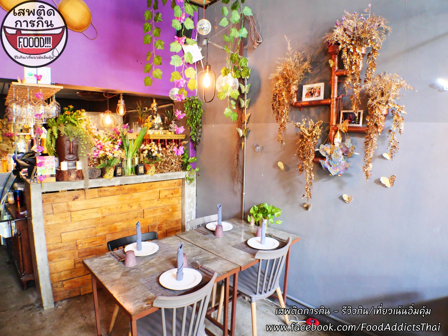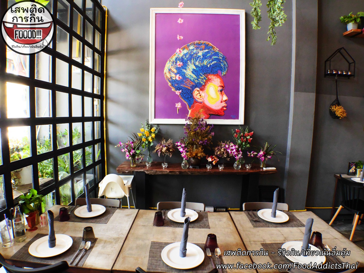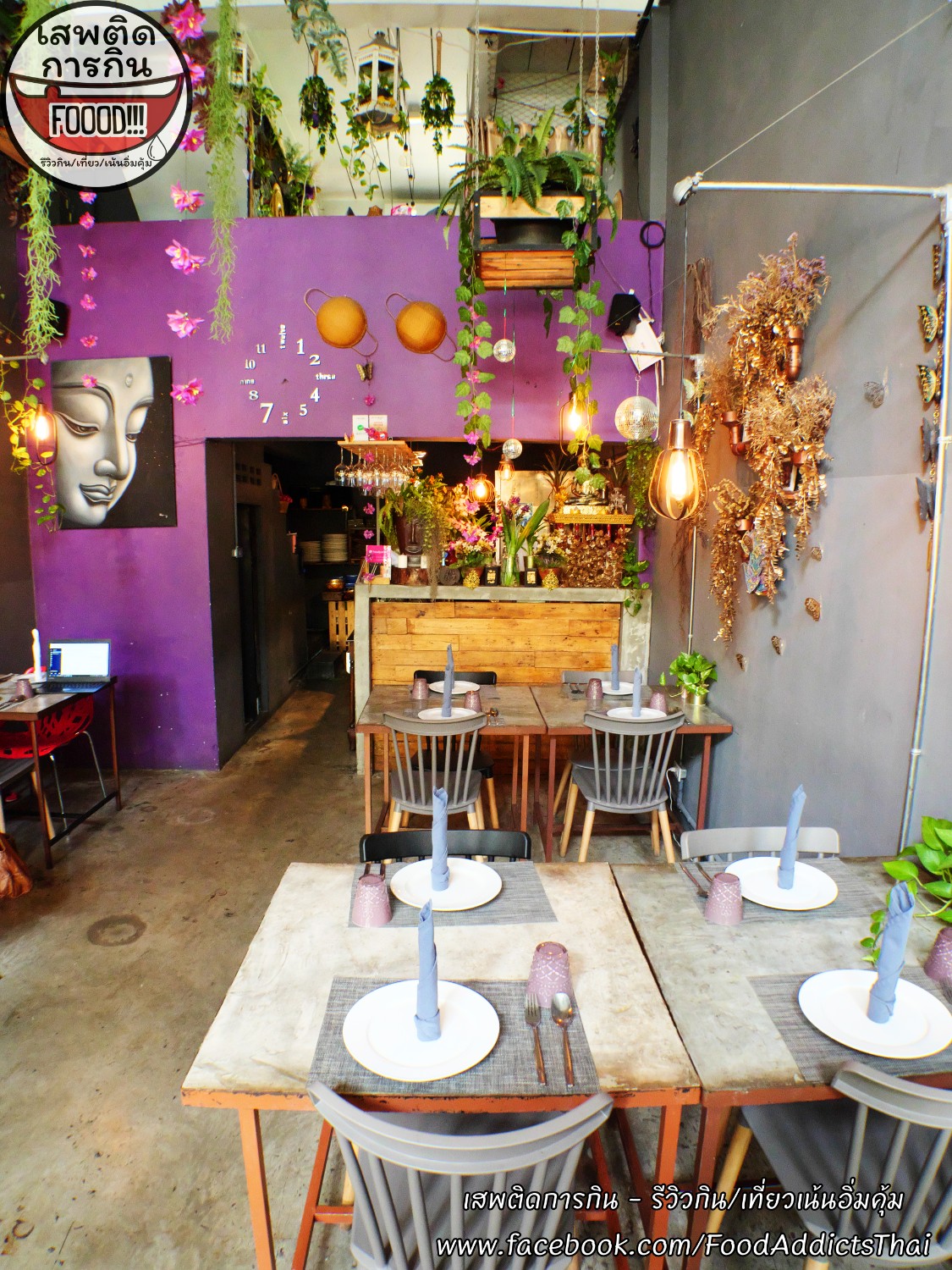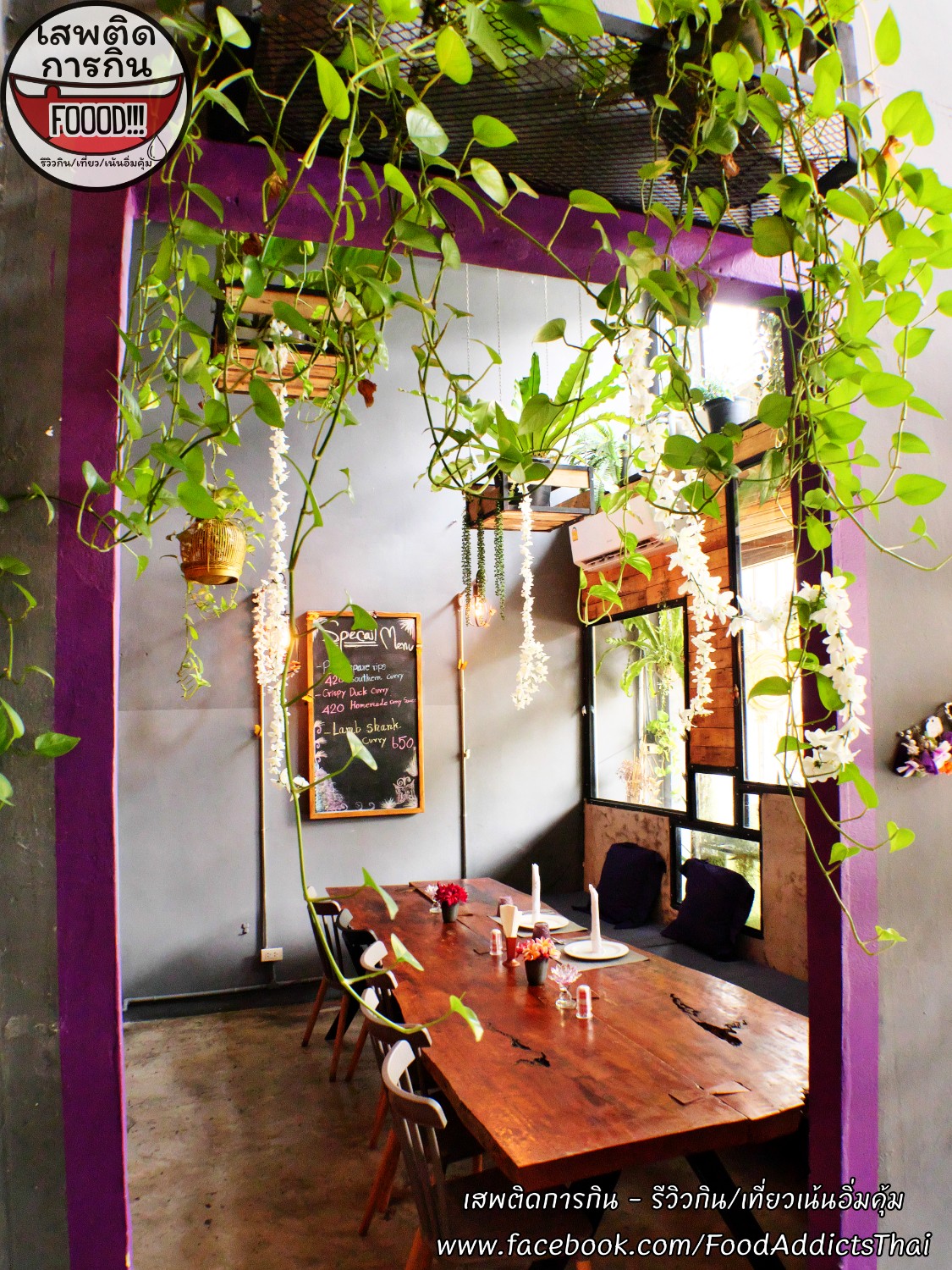 การตกแต่งภายในร้านของสาขาพัทยานี้มีความเป็นธรรมชาติ ทั้งดอกไม้และต้นไม้ต่างๆประดับเต็มร้าน แต่ยังคงโทนสีม่วง/เทา ตามแบบฉบับเดียวกับร้านที่กทม. ผสมกับความเป็นศิลปะแบบผสมผสานที่ดูลงตัว แต่ถ้าเทียบกับสาขาที่กรุงเทพแล้ว ที่นี่ดูมีความผ่อนคลาย น่าปล่อยอารมณ์นั่งทานอาหาร ดื่มด่ำบรรยากาศเรื่อยๆมากกว่าครับ