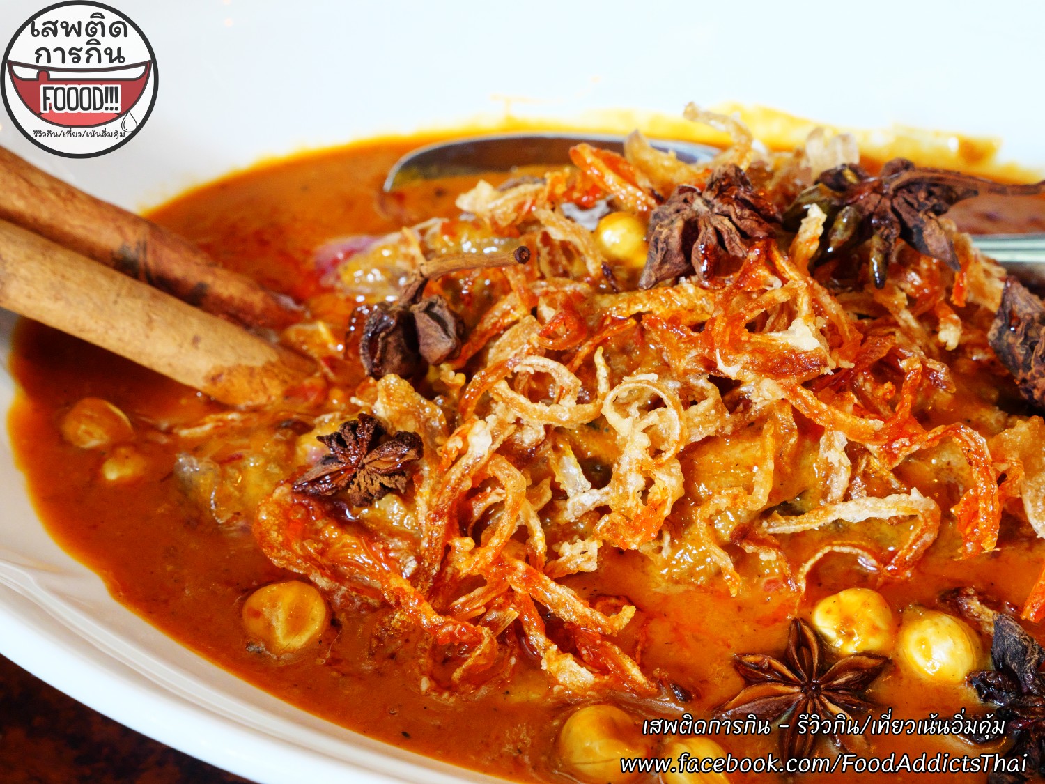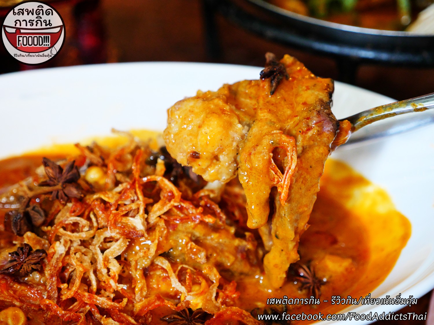 2 เมนูถัดมาเป็นหมูน้ำตก ราคา 190 บาท คอหมูย่างชิ้นใหญ่นำมาสไลด์และปรุงรสในแบบน้ำตกสไตล์ภาคอีสานรสชาติจัดจ้าน หอมกลิ่นเครื่องเทศสมุนไพรไทยแบบจัดเต็ม รวมถึงความเปรี้ยว/เผ็ดสะดุ้งโดนใจ สังเกตว่าเคล็ดลับของจานนี้ก็คือ มีการใส่ใบมะกรูดซอยลงไป ช่วยเพิ่มความหอมและลดความเลี่ยนของคอหมูย่างลงได้อีกด้วย ใครที่เป็นคนชอบทานผักสด ในชุดนี้ถือว่าให้ผักสดมาเยอะเข้ากันได้ดีกับหมูน้ำตกรสชาติจัดจ้านมากครับ เมนูถัดมาคือ มัสมั่นเนื้อราคา 450 บาท ที่ทางร้านแนะนำมาว่าให้ลองสั่งทานดู เป็นมัสมั่นเนื้อวัวในรูปแบบการเล่าเรื่องใหม่ ที่ยังคงความเป็นไทยเดิมอยู่ มาถึงตอนนี้หลายคนอาจจะงงว่าปกติมัสมั่นก็คือเอาการเนื้อลงไปตุ๋นในเครื่องแกง แล้วถึงจะได้แกงมัสมั่นเนื้อวัวนุ่มๆละลายในปากออกมา แต่ที่ร้านนี้ไม่เหมือนใคร เริ่มจากด้านล่างสุดเป็น มันฝรั่งบดเพื่อให้ทุกอนูของแกงมัสมั่นซึบซาบไปในทุกคำ และหมายถึงมันฝรั่งที่ต้มลงในแกงจนได้ที่ ชั้นถัดมาเป็นเนื้อวัวติดมันย่างสไลด์แบบ Medium Rare เป็นการตีความนุ่มของเนื้อในมัสมั่นใหม่ โดยความนุ่มนั้นไม่ได้มาจากการตุ๋นด้วยไฟอ่อนๆที่ใช้เวลานานเพียงอย่างเดียว แต่ทางร้านพยายามที่จะทำให้เก็บรสชาติและความนุ่มของเนื้อชั้นดีเอาไว้ ชั้นบนสุดเป็นซอสมัสมั่น/หอมเจียวและเครื่องเทศแบบจัดเต็ม ถึงตอนดูด้วยสายตามันไม่ใช่มัสมั่น แต่รสชาติโดยรวมแล้วมันก็คือแกงมัสมั่นที่ครบทุกองค์ประกอบ เป็นการเล่าเรื่องมัสมั่นไทยในรูปแบบใหม่ที่น่าสนใจ และแน่นอนว่ามื้อนี้ก็ต้องมีข้าวสวยฟรีเติมได้เรื่อยๆ อาหารรสจัดทานคู่กับข้าวสวยร้อนๆแบบนี้ทำเอาผมติดใจทุกครั้งที่มาที่นี่เลยครับผม