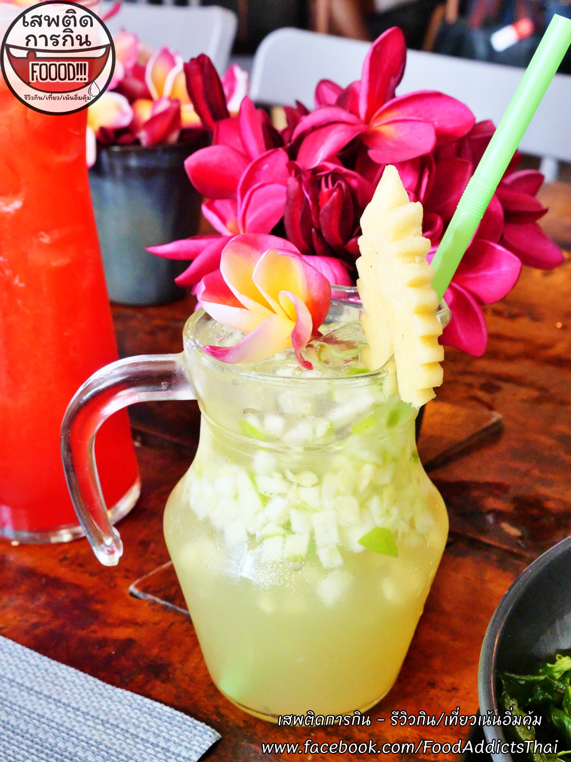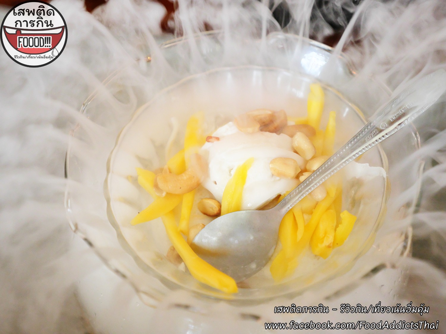 นอกจากอาหารที่ดีแล้วร้านนี้ยังทำ Mock Tail รสชาติอร่อยอีกด้วย วันนี้เราสั่งมาทั้งหมด 3 เมนูได้แก่ Mai Tai ปกติก็เคยทานไหมไทยมาหลายที่ แต่ที่นี่มีความหอมหวานของผลไม้ชัดเจนที่สุดเท่าที่เคยทานมา มาที่ร้านนี้ทีไรก็จะสั่งเมนูนี้ทุกที (ถึงแม้ว่าจะไม่ได้เป็นเมนูแนะนำก็เถอะ) ตามมาด้วย Miyaki เป็นน้ำแอปเปิ้ลเขียวผสมกับขิงสด มีความเปรี้ยวหอมสดชื่นหวานกำลังดี ส่วนแก้วสุดท้ายเป็น Umbinggo เป็นแอปเปิ้ลเขียวผสมกับเสาวรสรสชาติเปรี้ยวหวานหอมกลิ่นเสาวรสสดชื่น ทุกแก้วราคา 150 บาททั้งหมด ไม่ถูกไม่แพง แต่ได้ความหวานสดชื่นแบบเต็มๆดีครับ ปิดท้ายด้วยไอศครีมกะทิสดราคาถ้วยละ 190 บาทการจัดเสิร์ฟก็เหมือนกับร้านที่กรุงเทพฯมี Dry Ice พวยพุ่งมาจากด้านล่าง ช่วยรักษาความเย็นของไอศครีมได้เป็นอย่างดี ส่วนเนื้อไอศครีมก็เป็นแบบโฮมเมด ไม่ได้มีความนวลเนียน แต่ก็มีความหวานหอมเข้มข้น ทานกับถั่วลิสงคั่วและขนุนหั่นชิ้น ช่วยเพิ่มสัมผัสในการเคี้ยวไปอีกขั้นครับ