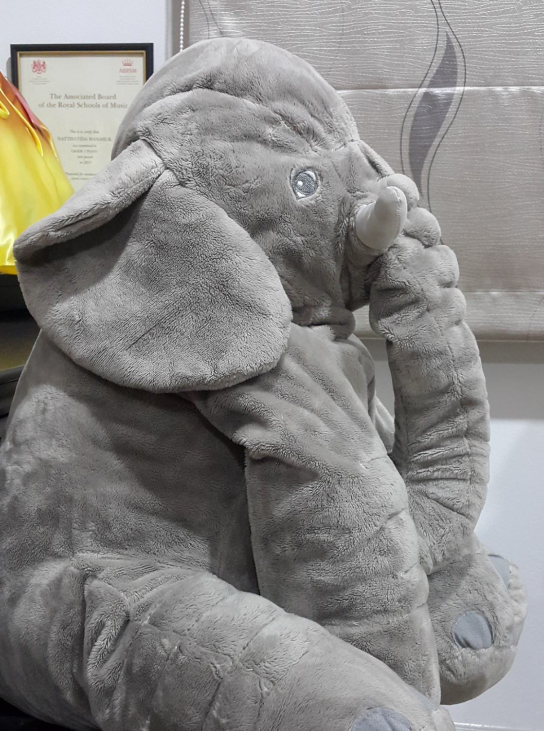 นั่งทำงานในห้อง มองไปเก้าอี้เห็นตุ๊กตาคุ้นๆ นึกถึงพี่ช้างใหญ่เลย อยากให้พี่ช้างใหญ่