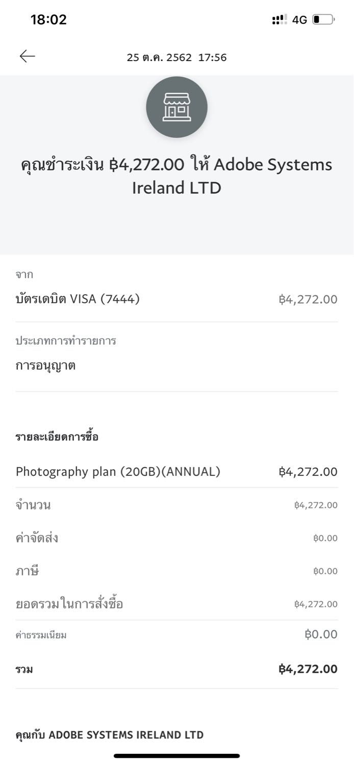 ผมสมัคร Paypal จ่ายให้ Adobe Photography plan 1 ปี ตัดเงินจาก ธนาคารเข้า Adobe แล้วเเต่ใช้งานไม่ได้ครับ ใน Paypal ขึ้นเเบบนี้
