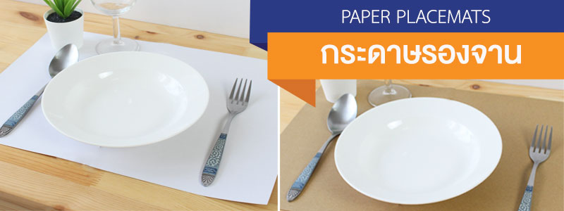กระดาษรองจาน สำหรับรองจาน ช้อน ซ้อม แก้ว เป็นองค์ประกอบบนโต๊ะอาหารทำให้ดูสะอาดตาและเรียบร้อย มีขนาด A3 และ A4 สีน้ำตาลธรรมชาติ(KT)หนา 125 แกรม และสีขาว(KS) หนา 170 แกรม