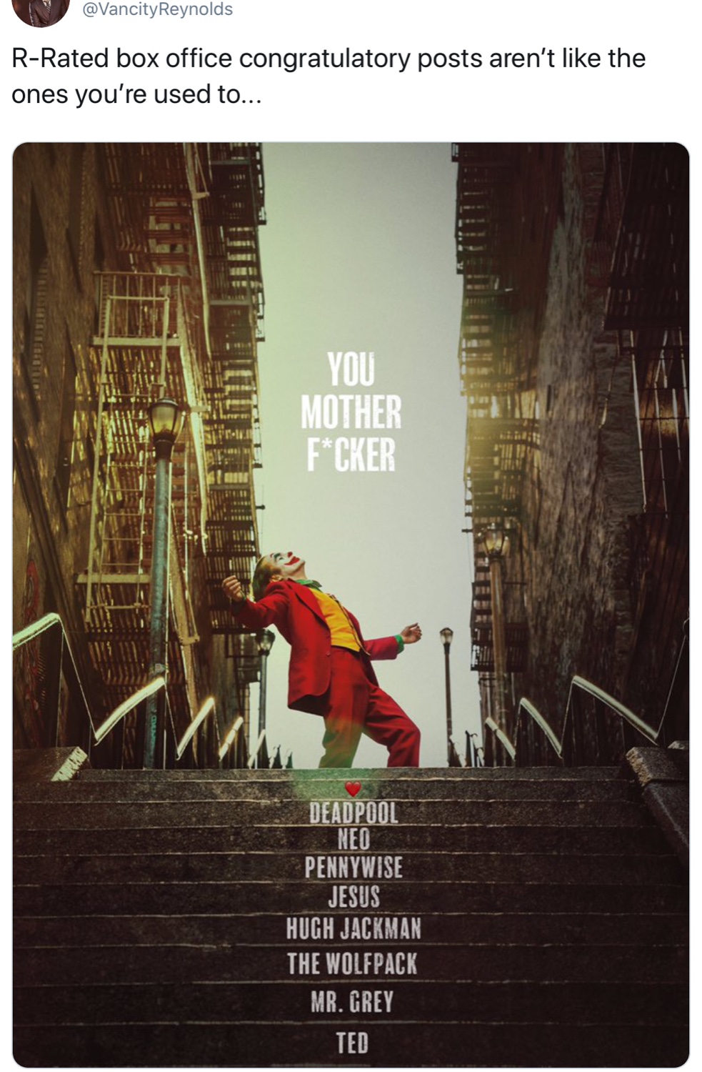 Ryan Reynolds แสดงความยินดีกับสถิติใหม่ของหนัง Joker ได้แนวมาก