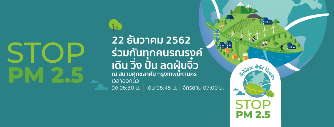 22 ธันวาคม 2562 นี้ เขานัดรวมตัว เดิน วิ่ง ปั่น รณรงค์ลดฝุ่นจิ๋ว PM 2.5
