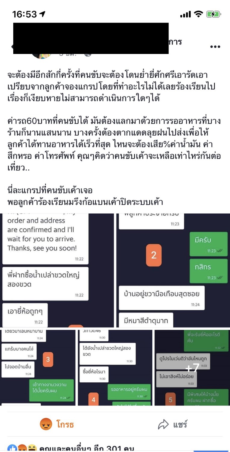 [อันนี้เป็นข้อความ post บน fb ของพี่คนขับแกร็บ #Grab Food คนนึงครับ ที่จะบอกว่า ลูกค้า