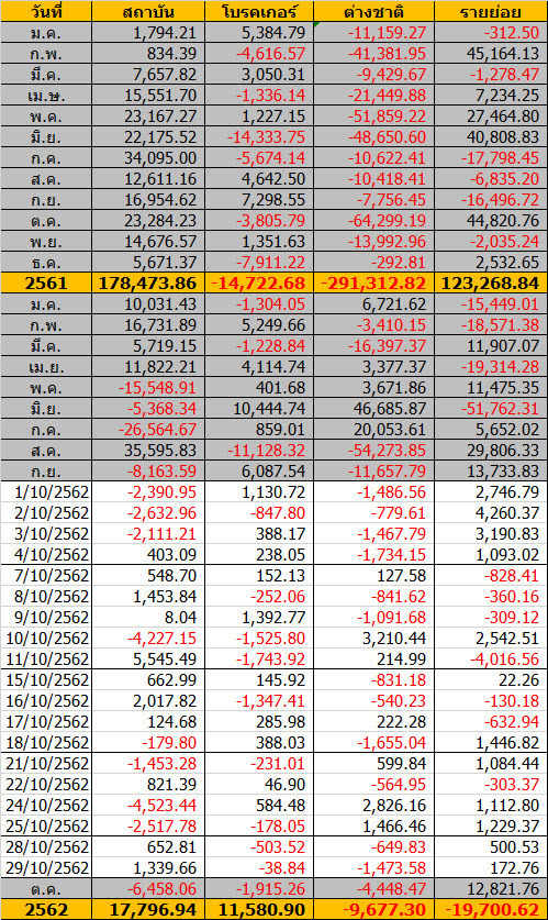 Sinthorn Summary 31/10/2562 : ต่างชาติขายสุทธิ -3,867.12 ลบ.