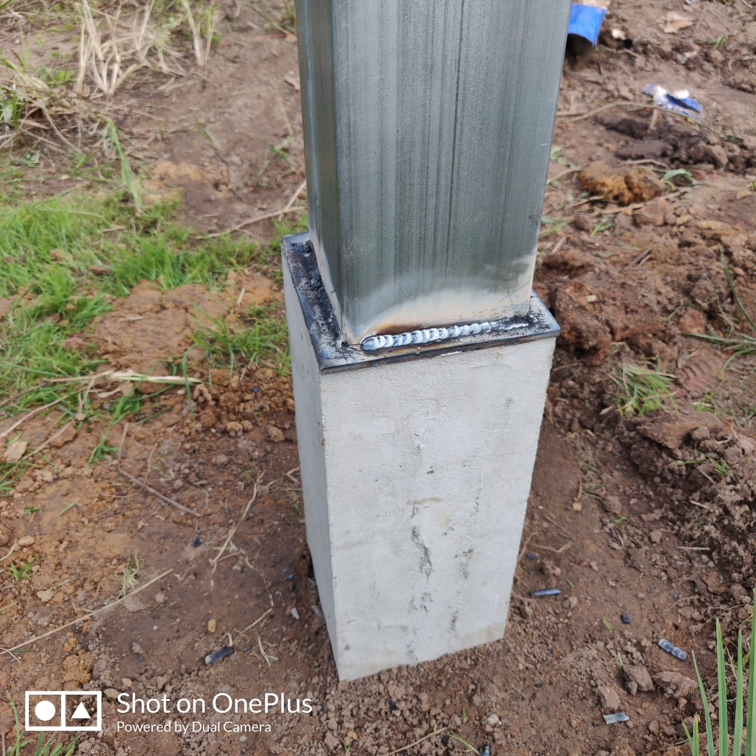 เสาตอหม้อ เป็นแบบนี้ แข็งแรงพอมั้ยคะ เป็นเสาปูน ฝังลงดิน 30 ซม. มีเพลทเหล็กด้านบน และช่างก็เชื่อม แบบนี้เลย