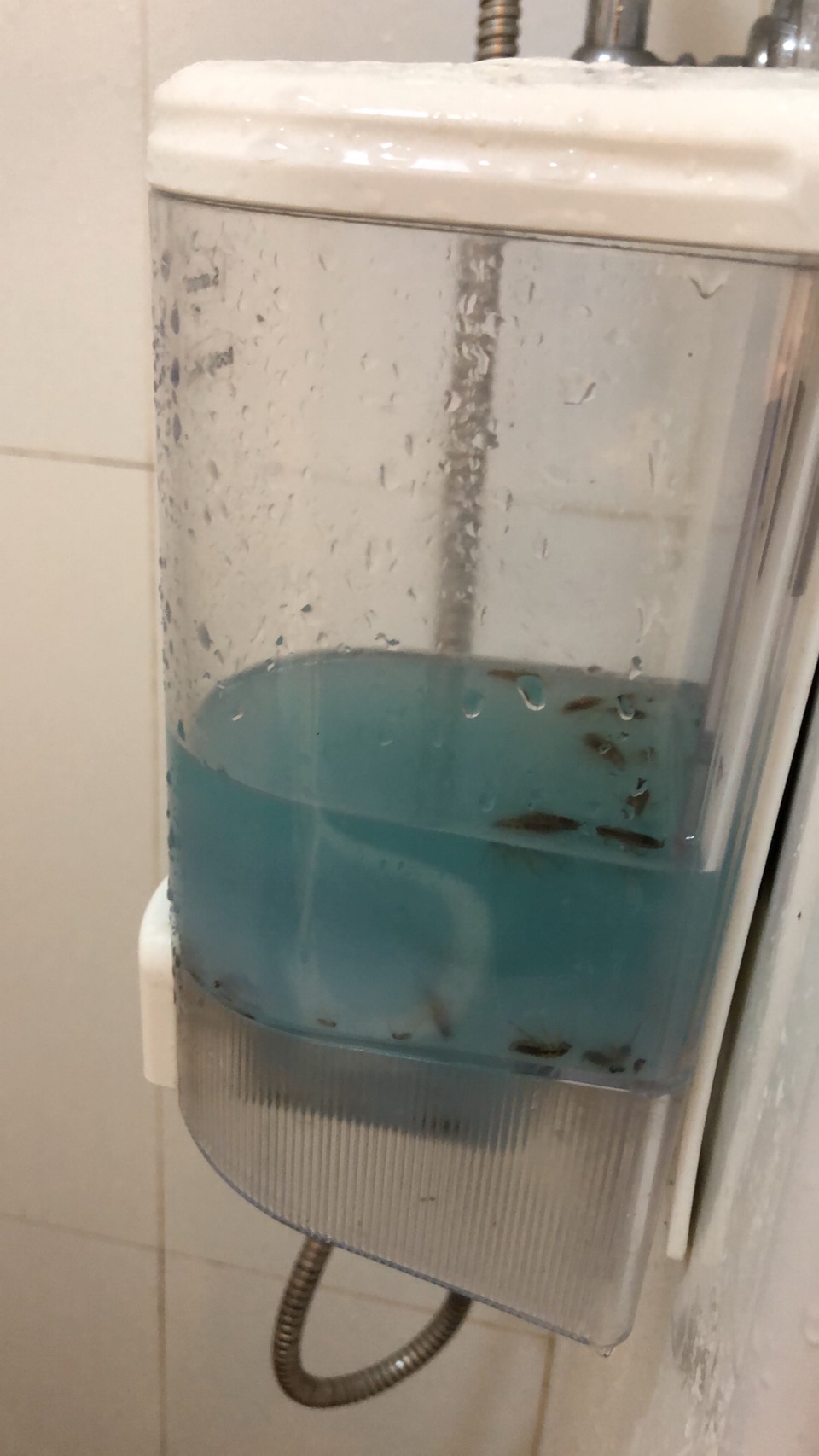 และนำภาพแมลงสาบในเจลอาบน้ำให้พนักงานดู พนักงานทำหน้าอึ้งแล้วบอกจะทำการย้ายห้องให้ แต่ต้องรอ 4 โมงเย็น ให้พวกเรารอก่อน